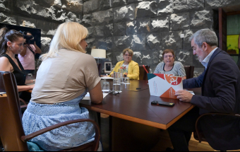 El presidente de Canarias, Fernando Clavijo, recibió hoy a los responsables de la Federación de Salud Mental de Canarias, entre ellos, a su presidenta, María Cristina Acosta. A la reunión asistió también la consejera de Sanidad, Esther Monzón, la directora general de AFES Salud Mental, Alicia Silva de la Cruz, la gerente de Salud Mental ATELSAM, y la psicóloga de la Federación de Salud Mental de Canarias, González.