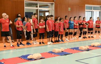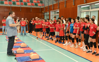 “Antes de jugar, aprende RCP -reanimación cardiopulmonar-“. Bajo ese lema, la cantera del CV San Roque, en el barrio de El Batán de Las Palmas de Gran Canaria, aprendió a salvar vidas con dos padrinos de excepción, Carmelo Cabrera, exjugador de baloncesto de Real Madrid, Valladolid, CB Canarias y la selección española, y Ofelia Reyes, Patrona de la Fundación Canaria de Cajasiete Pedro Modesto Campos.