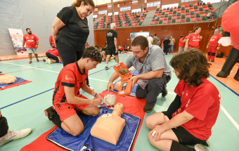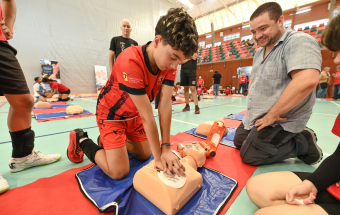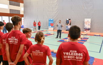 Por último, Otelo Hernández, fue uno de los canteranos que a sus 12 años tuvo la oportunidad de estar en estas prácticas para aprender a hacer una RCP, una experiencia que tilda de “muy útil”. Tras una hora y media, el jugador del infantil del San Roque lo tiene claro: “Ahora me veo capacitado, es una acción fácil y con saber un poco dónde ponerse, la posición y todo, pues ya es más fácil. La clave es dar fuerza, poner toda tu fuerza encima y darle golpes en este hueso de aquí hasta reanimarla”.