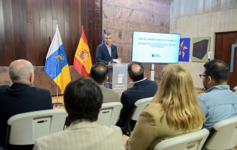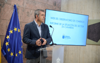 El vicepresidente del Gobierno de Canarias y consejero de Economía, Industria, Comercio y Autónomos, Manuel Domínguez, presentó hoy el nuevo portal web del Observatorio del Comercio de Canarias, un espacio de referencia donde se centralizarán estudios y estadísticas sobre la evolución del sector, integrando indicadores clave como empleo, consumo, comercio exterior o hábitos de compra. Una de las funcionalidades de esta nueva herramienta es la de elaborar estudios específicos, cuyo primer diagnóstico del sector comercial en Canarias fue presentado por el director general Comercio y Consumo, David Mille.