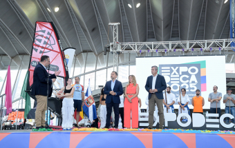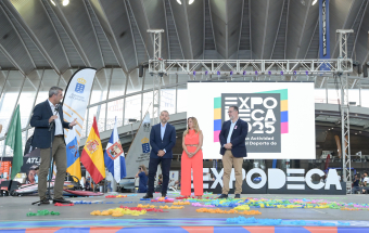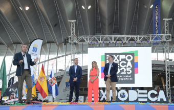 El vicepresidente del Gobierno de Canarias, Manuel Domínguez, junto con el consejero de Educación, Formación Profesional, Actividad Física y Deportes, Poli Suárez, la presidenta del Cabildo de Tenerife, Rosa Dávila, y el alcalde de Santa Cruz de Tenerife, José Manuel Bermúdez, inauguraron hoy la feria ExpoDeca 2025, la Feria de la Actividad Física y del Deporte de Canarias, que se celebrará hasta el domingo en las instalaciones del Recinto Ferial de Tenerife.