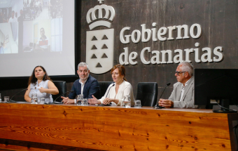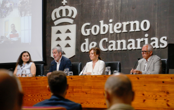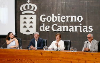 El presidente de Canarias, Fernando Clavijo, saludó hoy a los 107 nuevos policías locales que han superado la oposición unificada, realizada por el Gobierno y la FECAM; antes de que se celebre el acto de sorteo de su destino. Acompañaron al presidente la consejera de Seguridad, Nieves Lady Barreto, la presidenta de la FECAM, Mari Brito; y el director general de Estudios, Formación e Investigación en Seguridad Pública, José Manuel González Afonso.