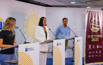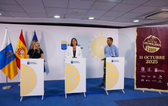 El viceconsejero de la Actividad Física y Deportes del Gobierno de Canarias, Ángel Sabroso, junto con la alcaldesa de Vega de San Mateo, Davinia Falcón, y la directora de la carrera, María García, presentó este martes la novena edición de la Ruta de los Molinos, una cita que se celebrará el próximo sábado, 11 de octubre, y que batirá récord de participación con 900 corredores y corredoras.