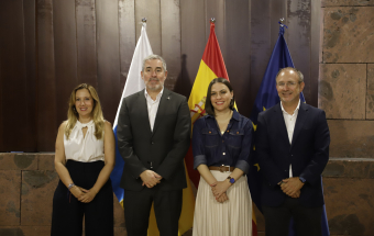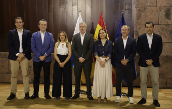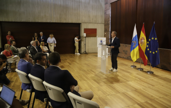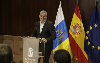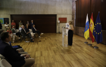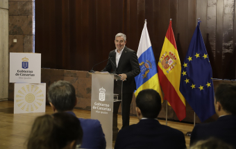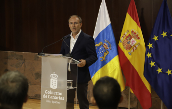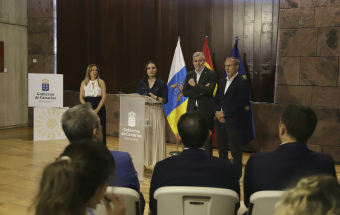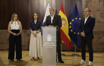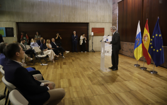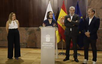 El presidente de Canarias, Fernando Clavijo, participó hoy en la rueda de prensa en la que Tenerife y La Palma presentan una candidatura compartida para albergar el futuro Centro Nacional de Vulcanología. En esta rueda de prensa, estuvieron presentes la presidenta del Cabildo de Tenerife, Rosa Dávila; el presidente del Cabildo de La Palma, Sergio Rodríguez: y la consejera de Universidades, Ciencia e Innovación y Cultura, Migdalia Machín.