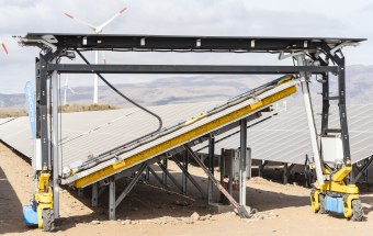 Además, la instalación cuenta con el primer robot de limpieza de paneles solares en seco. Se trata de la primera vez que se utiliza esta tecnología a gran escala en España, una medida que se ha adoptado para hacer frente a la necesidad de limpieza de los módulos fotovoltaicos en una zona en la que la suspensión de polvo afecta al funcionamiento de la instalación, pero donde había que afrontar la escasez de agua. Dicho robot está dotado de un cepillo de 5 metros de ancho y tiene un funcionamiento autónomo gracias a las baterías que se alimentan con módulos solares y que permiten que se autorrecargue mientras está funcionando. De este modo, la maquinaria puede operar durante 8 horas seguidas, reduciendo en un 97,5% el tiempo necesario para su limpieza, que antes se hacía de forma manual, y eliminando el uso de agua. A su vez, el sistema de limpieza tiene integrado un radar con tecnología LiDAR que es capaz de detectar la situación de los módulos fotovoltaicos para poder alinearse con ellos y está equipado con sistemas de seguridad, como sensores de proximidad, para evitar daños en los módulos fotovoltaicos, siendo capaz de adaptarse a las irregularidades del terreno para moverse con facilidad sin afectar a los paneles. Y con el fin de que el proyecto tenga el mayor impacto en el territorio donde se ubica, Endesa a través de su filial Enel Green Power España va a lanzar en los próximos días una campaña de microfinanciación participativa en varias fases. La primera restringida a los municipios más cercanos a la instalación, San Bartolomé de Tirajana y sus municipios limítrofes además de Agüimes e Ingenio, para posteriormente ampliar a toda Canarias y finalmente para todo el territorio nacional.