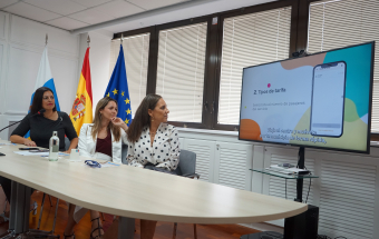 La directora general de Transportes y Movilidad del Gobierno de Canarias, María Fernández; la alcaldesa de San Mateo, Davinia Falcón, y la directora de la Fundación Nos Movemos, Rosa Martín, han dado a conocer hoy la nueva aplicación móvil del sistema de transporte rural inteligente y a demanda, ‘San Mateo en Ruta: Transporte Inteligente’, una herramienta que ya está disponible para que los vecinos y vecinas, que residan en el municipio, comiencen a probarla y familiarizarse con su funcionamiento antes de la puesta en marcha definitiva del servicio el próximo lunes, 27 de octubre.