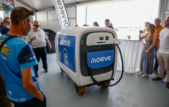 Gracias a la importante colaboración de las empresas CICAR y Moeve se ha logrado tener aquí este coche-e de competición y un punto de recarga móvil específico para el mismo.