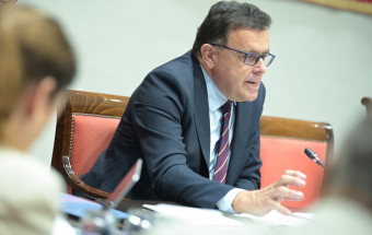 El consejero informó de que el presupuesto en materia de Aguas disminuye un 4% (en 2026 será de 35 millones de euros) debido principalmente a la necesidad de ajustar las previsiones a los tiempos reales de tramitación de los proyectos y, además, a la finalización de las obras financiadas por los fondos Next Generation.