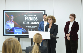 La consejera de Bienestar Social, Igualdad, Juventud, Infancia y Familias, Candelaria Delgado, la presidenta de la asociación más Mujer Canarias, Rita Calero y el concejal de Igualdad del Ayuntamiento de La Laguna, Dailos González, presentaron hoy el acto de entrega de los premios Más Mujer que este año celebran su séptima edición.