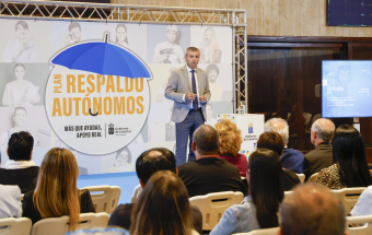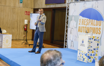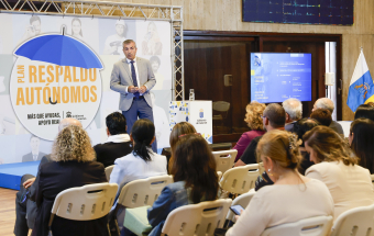 El vicepresidente y consejero de Economía, Industria, Comercio y Autónomos del Gobierno de Canarias, Manuel Domínguez, presentó hoy, ante el colectivo de trabajadores autónomos de Canarias, el Plan Respaldo Autónomos que incluye las medidas implantadas por el Gobierno de Canarias para impulsar, proteger y acompañar a este colectivo emprendedor.