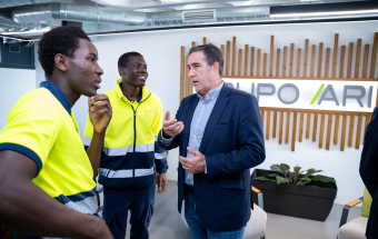 Durante la visita, que contó con la presencia de la CEO y del director general del Grupo Arimotor, Timandaya Rodríguez y Fernando González, respectivamente, el viceconsejero de Bienestar Social conoció el lugar de trabajo de Lassana Tornará, procedente de Mali, y de Amadou Bojang, de Gambia. Ambos jóvenes, que llegaron en cayuco a las islas hace dos años, mostraron su agradecimiento al proyecto y manifestaron su entusiasmo ante la oportunidad laboral ofrecida en el Grupo empresarial gracias al proyecto Urdimbre.