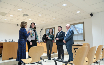 Cesáreo Rodríguez estuvo acompañado durante la visita a la sección de Violencia contra la Mujer del Tribunal de Instancia de Santa Cruz de Tenerife —según la actual denominación de la Ley de Eficiencia Judicial— por la directora general de Relaciones con la Administración de Justicia, Leonor Ferrer; el vicedecano y la secretaria del Colegio de Abogados, José Antonio Domínguez y Carolina García, respectivamente, además de por la directora adjunta del Servicio Común de Tramitación, María Jesús Padrón.