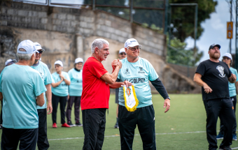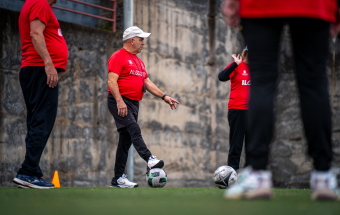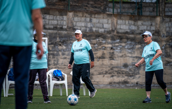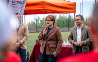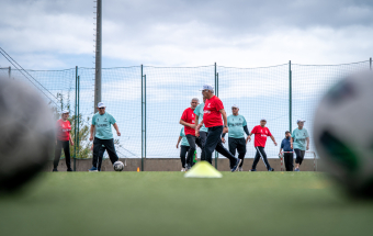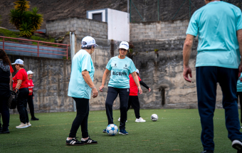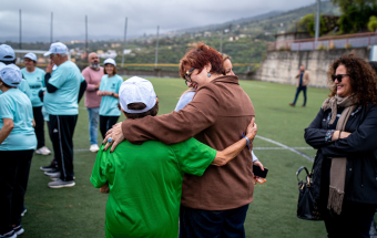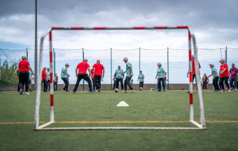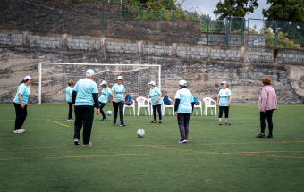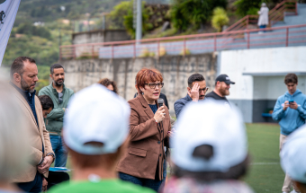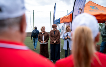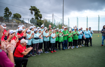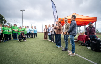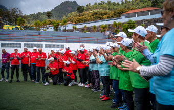 La consejera de Bienestar Social, Igualdad, Juventud, Infancia y Familias del Gobierno de Canarias, Candelaria Delgado y el director de proyectos de la Fundación del CD Tenerife, Artamy Rodríguez, asistieron hoy a la concentración de fútbol caminando, modalidad incluida en el proyecto AlGolpito, que se celebrará en La Palma y en la que tomarán parte un centenar de personas mayores de 60 años.