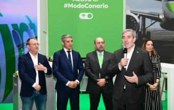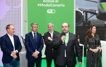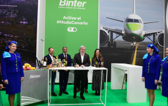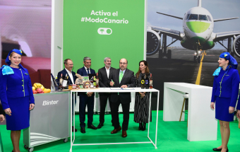 El coordinador general de Binter, Santiago Guerra, y el presidente de Canarias, Fernando Clavijo, han rubricado hoy en el estand de la compañía aérea (9E08) situado en la zona de Islas Canarias, el acuerdo que se enmarca en la estrategia "Crecer Juntos” del Gobierno de Canarias, que persigue incorporar y consolidar el producto local al consumo turístico y vincular la gastronomía del archipiélago a su proyección turística.