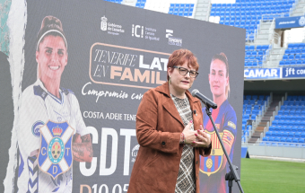 La consejera de Bienestar Social, Igualdad, Juventud, Infancia y Familias del Gobierno de Canarias, Candelaria Delgado, y los presidentes del Club Deportivo Tenerife Femenino, Sergio Batista, y el presidente del Club Deportivo Tenerife, Felipe Miñambres, presentaron hoy la fiesta del fútbol femenino que tendrá lugar con motivo del encuentro ante el FC Barcelona que se disputa el 10 de mayo. Durante el acto se dieron a conocer los detalles de esta iniciativa y en el mismo también intervinieron el CEO de la Liga F, Pablo Vilches; la consejera de Deportes del Cabildo de Tenerife, Yolanda Moliné; la concejala de Igualdad y Diversidad Afectiva Sexual de Santa Cruz de Tenerife, Gladys de León; y el concejal de Deportes del Ayuntamiento de Adeje, Adolfo Alonso.