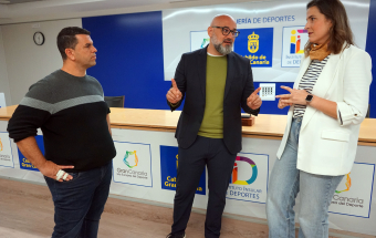 El consejero de Deportes del Cabildo de Gran Canaria, Aridany Romero, la concejala de Juventud y Deportes del Ayuntamiento de Las Palmas de Gran Canaria, Carla Campoamor, y el presidente de la Federación Canaria de Kickboxing y Muay Thai, Néstor Navarro, presentaron hoy en el Gran Canaria Arena el VII New Kumite Rules con el propósito de seguir afianzándose como una de las citas más relevantes dentro del calendario de las artes marciales en el ámbito internacional.