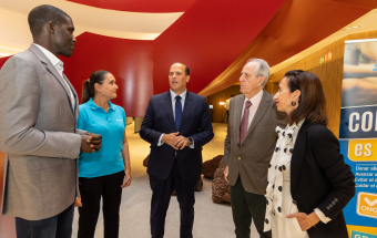 Esta acción solidaria ha sido presentada este lunes en la oficina all in one Gran Canaria de la entidad financiera en Las Palmas de Gran Canaria. Estuvieron presentes en el acto Sitapha Savané, presidente del Club Baloncesto Gran Canaria; el presidente del Banco de Alimentos de Las Palmas, Pedro Llorca; el director territorial de CaixaBank en Canarias, Manuel Afonso; y la responsable de Acción Social de la entidad en las Islas, Olga del Pino.