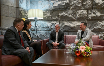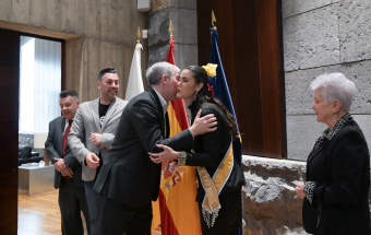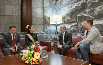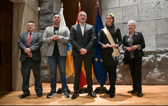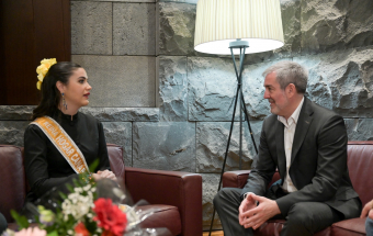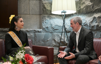 El presidente de Canarias, Fernando Clavijo, recibi esta maana, en la sede de Presidencia de Santa Cruz de Tenerife, a la reina del Carnaval del Hogar Canario Venezolano, Vernica Rodrgues, junto al presidente de la entidad, Enrique Franco.