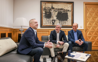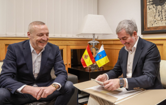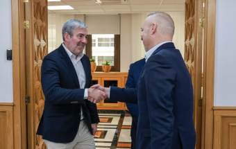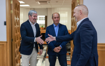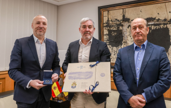 Durante el encuentro, al que también asistió el director general de Deportes, José Francisco Pérez, el presidente del club hizo entrega al presidente canario de la Medalla de Plata conmemorativa del 75 aniversario de la UD Las Palmas, así como, una obra gráfica de edición limitada que recoge momentos representativos de la historia de la entidad.
