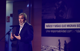 Fernando Clavijo hizo estas consideraciones en la inauguración de la jornada ‘Niños y niñas que migran solos: una responsabilidad compartida’, una reunión organizada por el Gobierno de Canarias en Madrid a la que han asistido casi un centenar de representantes de entidades que acogen a menores migrantes o especializadas en el fenómeno migratorio, además del secretario de Estado de Juventud e Infancia, Rubén Pérez Correa. También participaron los responsables de infancia y atención a las personas migrantes de Euskadi, en la línea con la línea de trabajo conjunta que mantiene el Gobierno canario y el vasco.