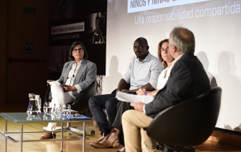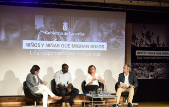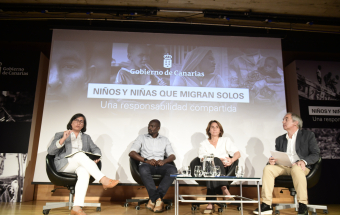 El encuentro con las ONG y organizaciones que trabajan con la infancia migrante, impulsado desde el Gobierno de Canarias, se inició con una mesa redonda en la que participaron la responsable de Infancia no acompañada de Acnur, Margarita de la Rasilla; el intérprete en ACCEM y mediador maliense Aboubacar Dramen y la abogada especialista en infancia y migraciones en Coordinadora de Barrios, Patricia Fernández.