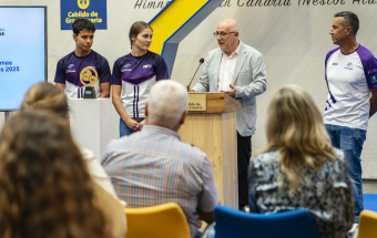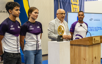 El presidente del Cabildo de Gran Canaria, Antonio Morales recibió a una representación del Club Natación Las Palmas tras su triunfo en el Campeonato de España y Copa del Mundo absolutos por equipos de natación de aguas abiertas, un hito en la historia de este deporte en Canarias.