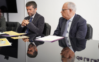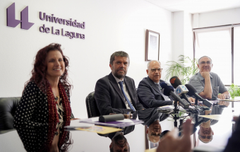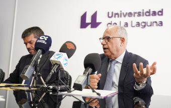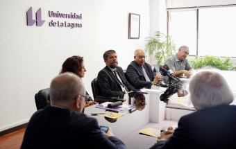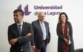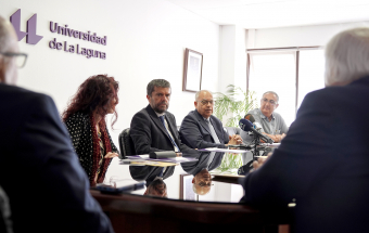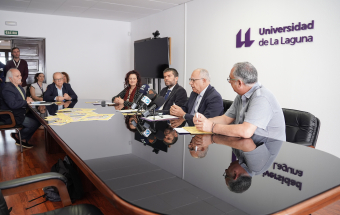 El presidente del Cabildo de La Gomera, Casimiro Curbelo, junto al Rector de la Universidad de La Laguna, Francisco García, presentaron hoy, en las instalaciones de la ULL, la programación de la Universidad de Verano de La Gomera.