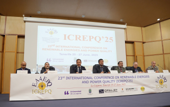 El Aulario General César Manrique del Campus de Guajara de la Universidad de La Laguna acogió hoy la inauguración del 23º Congreso Internacional de Energías Renovables y Calidad de la Energía (ICREPQ’25). En el acto comparecieron el consejero de Transición Ecológica y Energía del Gobierno de Canarias, Mariano Hernández Zapata; el rector de la Universidad de La Laguna, Francisco J. García Rodríguez; el consejero Insular de Industria, Comercio, Sector Primario y Bienestar Animal del Cabildo Insular de Tenerife, Manuel Fernández Vega; el director de la Escuela Superior de Ingeniería y Tecnología y miembro del Comité Científico, Ernesto Pereda de Pablo; y el director científico del Congreso, Manuel Pérez Donsión, de la Universidad de Vigo.