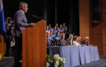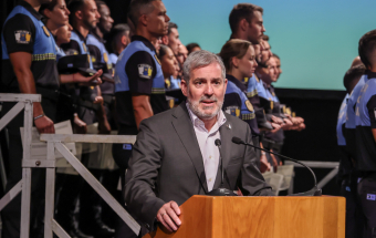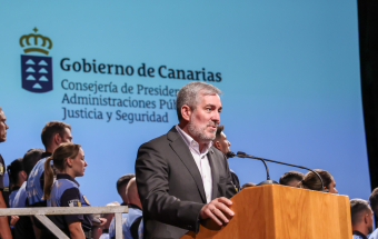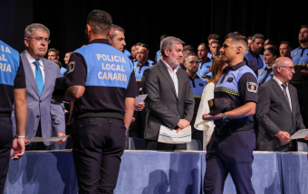 Clavijo presidió el acto de clausura de los cursos de acceso y promoción a la Policía Canaria, celebrado en el municipio grancanario de San Bartolomé de Tirajana, con 106 policías locales de nuevo ingreso, de 15 municipios de Canarias, y 68 agentes que ascienden profesionalmente a distintos mandos, tanto de la Policía Local como de la Policía Autonómica, como oficiales, subinspectores, inspectores y subcomisarios, que organiza la Dirección General de Estudios, Formación e Investigación para la Seguridad Publica.