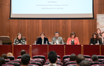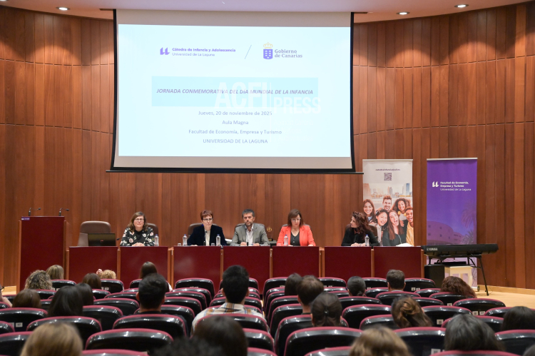 La consejera de Bienestar Social, Igualdad, Juventud, Infancia y Familias, Candelaria Delgado, acompañada por la directora general de Protección a la Infancia y las Familias, Sandra Rodríguez; el rector de la Universidad de La Laguna, Francisco J. García y la directora de la Cátedra Institucional de Infancia y Adolescencia, María Aránzazu Calzadilla, asistió hoy a la entrega de la segunda edición de los Premios María José Rodríguez López, que se impulsan a través de la Cátedra Institucional de Infancia y Adolescencia de la Universidad de La Laguna.