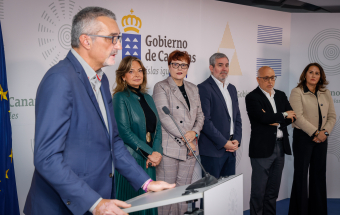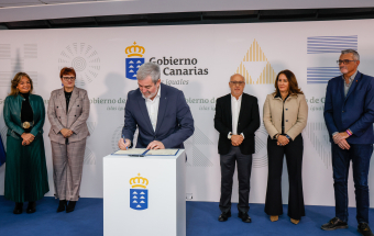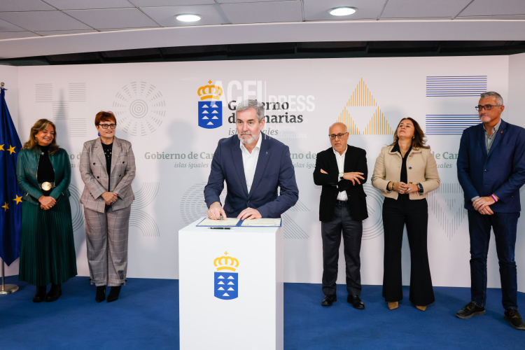 Clavijo, acompañado por la consejera de Bienestar Social, Candelaria Delgado, y de la de Sanidad, Esther Monzón, rubricó estos acuerdos con el presidente del Cabildo de Gran Canaria, Antonio Morales; la presidenta de Fuerteventura, Lola García; y el consejero de Bienestar Social e Inclusión del Cabildo de Lanzarote, Marci Acuña.