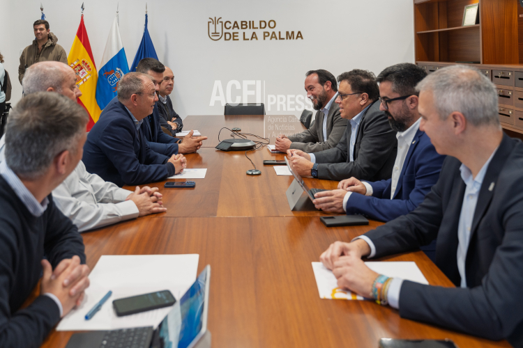 El consejero de Política Territorial, Cohesión Territorial y Aguas del Gobierno de Canarias, Manuel Miranda, y el presidente del Cabildo de La Palma, Sergio Rodríguez, mantuvieron hoy una reunión de trabajo en la que se abordaron cuestiones clave en materia de aguas, emergencias y ordenación del territorio, con el objetivo de reforzar la cooperación institucional y avanzar en actuaciones prioritarias para la isla.